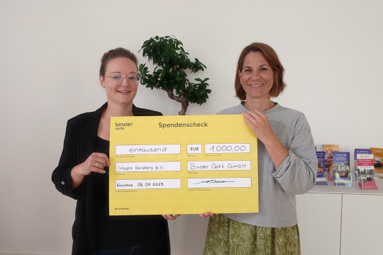 Wir freuen uns sehr über diese besondere Geste und die großzügige Spende. Herzlichen Dank und weiterhin alles Gute der Geschäftsleitung und allen Mitarbeitern der Binder Optik GmbH.